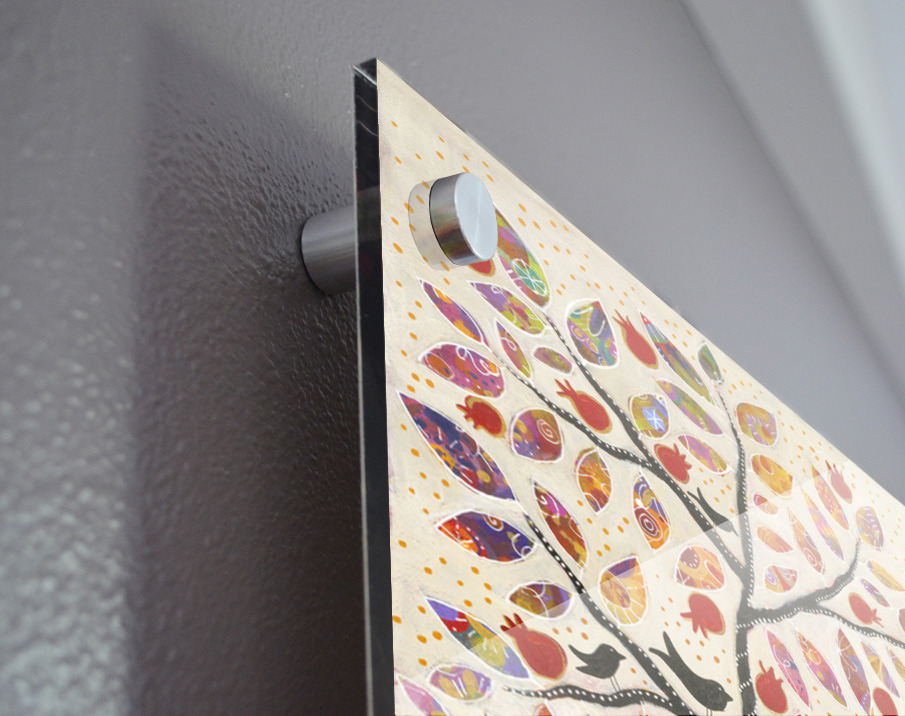Printed to the edge - Ready to hang - provided with 4 premium polished aluminum stand off ( wall screws and mounting hardware provided )