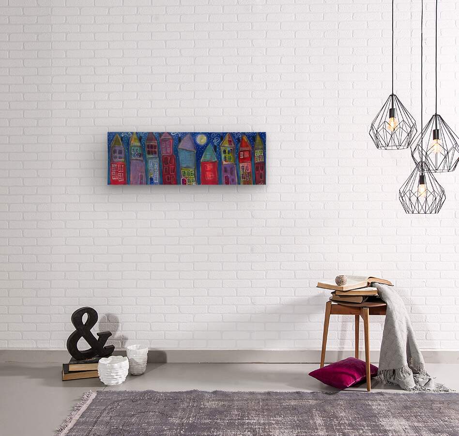 Night Row Homes  Wood print