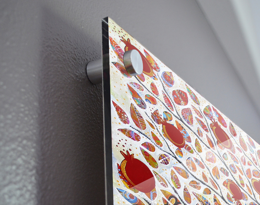 Printed to the edge - Ready to hang - provided with 4 premium polished aluminum stand off ( wall screws and mounting hardware provided )