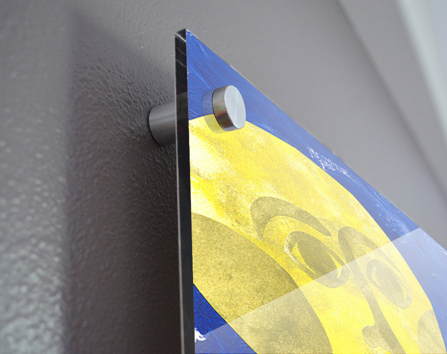 Impression sur acrylique avec entretoises ( cylindres métalliques )
